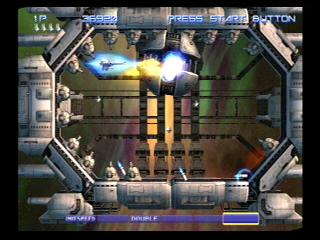 入り口のハッチ地帯は、前衛の終わりにあらかじめオプションを上下に配置して倒すか、もしくは後ろの方でしばらく待っていればザコの放出が終わるのでなんとかなります。