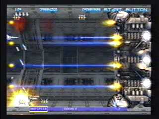 自機を真ん中のコアの高さに保って自機の先端を黄色のラインより左に位置すると、砲台の弾が自機に向かって飛んできません。あとは樽を使って火柱を最小限の動きで避けてください。樽は上でバウンドするものと下でバウンドするものが交互にでてきますが、バウンドする高さはランダムだと思われるので、ここは練習による経験でカバーしてください。黄色のラインより前にでると砲台の弾が飛んできますが、それは樽が防いでくれるのでほとんどの弾を避けずにすみます。高さを完全に真ん中に合わせるようにするともう少し右にいても大丈夫です。できるだけ高さは真ん中に合せるようにしてください。
