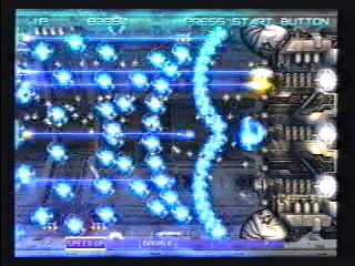 1つ目のオプションは上のダッカー、2つ目と自機が上の弱点、3つ目が真ん中の弱点、4つ目が下の弱点をそれぞれ攻撃でき、下のダッカーはミサイルで処理します。まず上の弱点が最初に破壊できるので、そうすれば真正面から飛んでくる電磁弾がなくなるのでかなり楽になります。一応5速でもなんとかなりますが、ジョイスティックでは結構大変です。アナログコントローラーなら若干楽ですが、死んだら何にもならないのでやはり0速に戻してしまうのが1番よいと思います。5速が制御できる人は5速でやってください。
